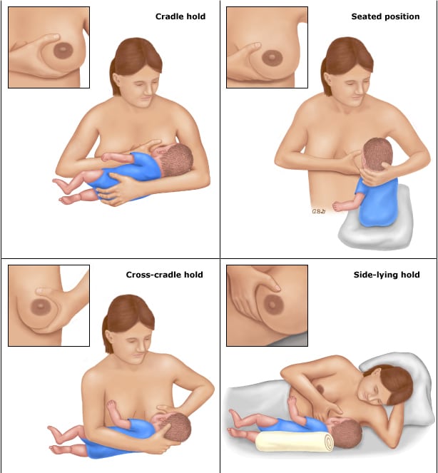 Οι συνήθεις θέσεις θηλασμού είναι :